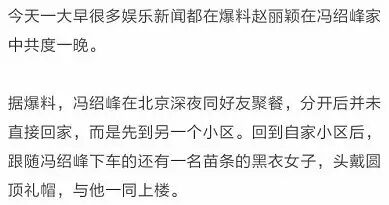 便有人曝出冯绍峰和赵丽颖同车来到酒店中