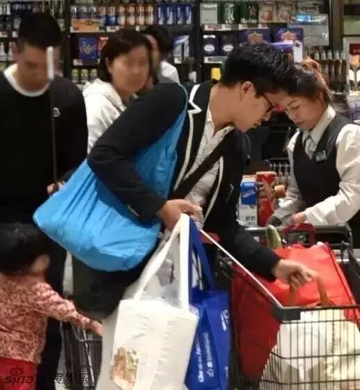 再往前倒,前年一家三口到超市购买日用品,穿的英伦学院情侣装还是四年前曝出俩人婚纱照那一套。