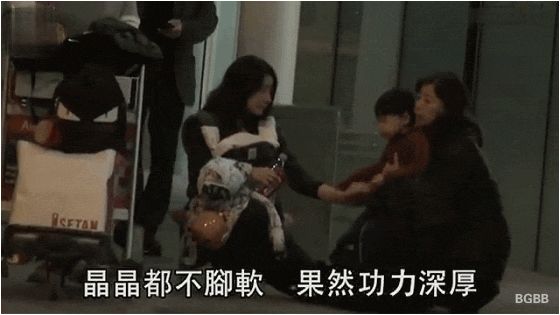 这时儿子霍中曦又累又困,向妈妈撒娇,想让妈妈抱。郭晶晶怀里当时正抱着女儿,可她又不想冷落儿子,所以就蹲了一下让儿子坐自己腿上,当他的人肉沙发。