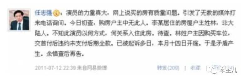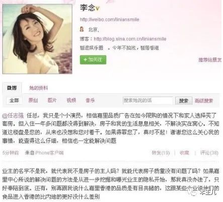 任志强爆料,李念所投诉的房子并非她本人所有,