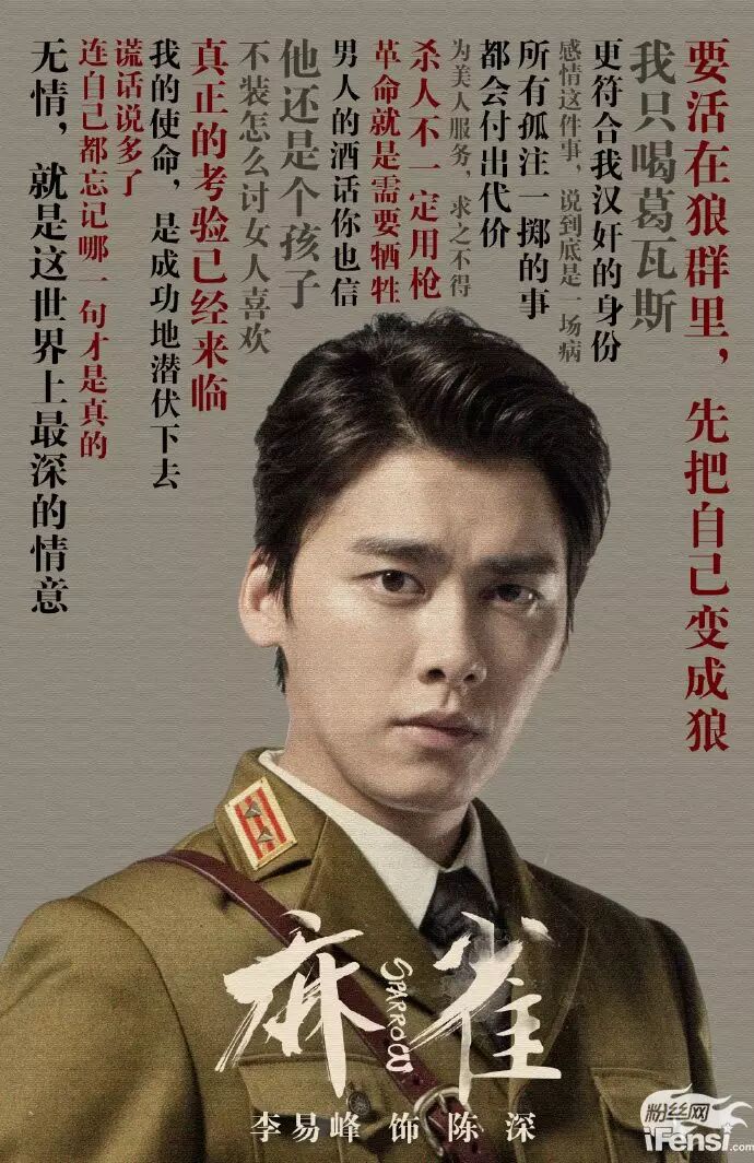 回想李易峰以往的角色好像都是这种双重人格的!与《古剑奇谭》《青云志》的亦正亦邪不同的是,麻雀的陈深是一心一意为国家的正面积极的形象...