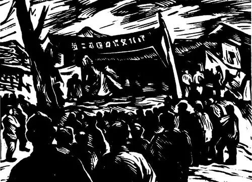 《日本风暴》(木刻组画之二) 28cm × 23cm 凸版 1960年