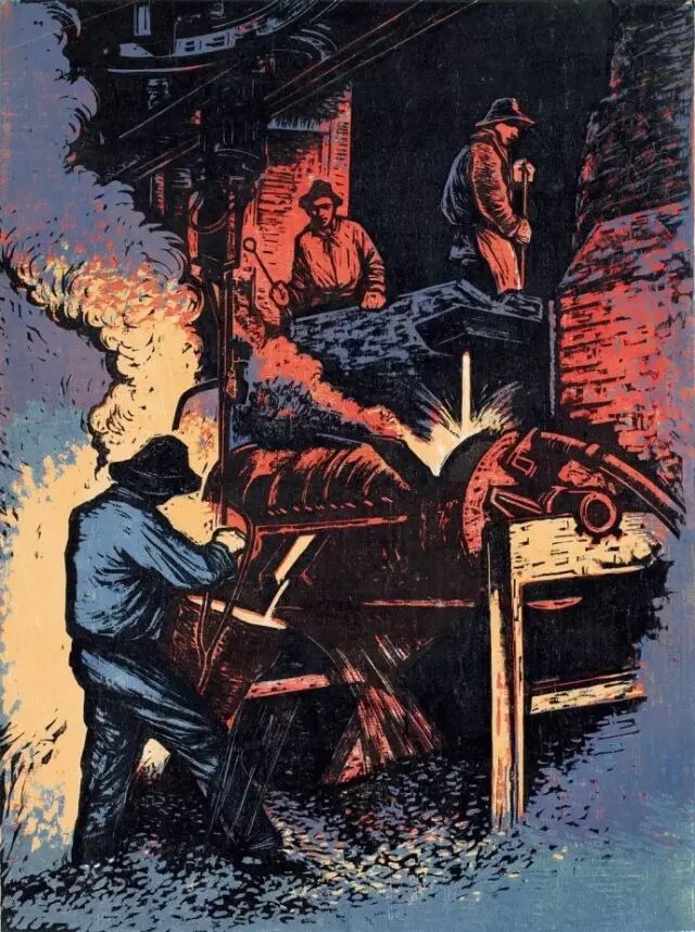 在熔化炉旁 50cm × 37.2cm 凸版 1957年