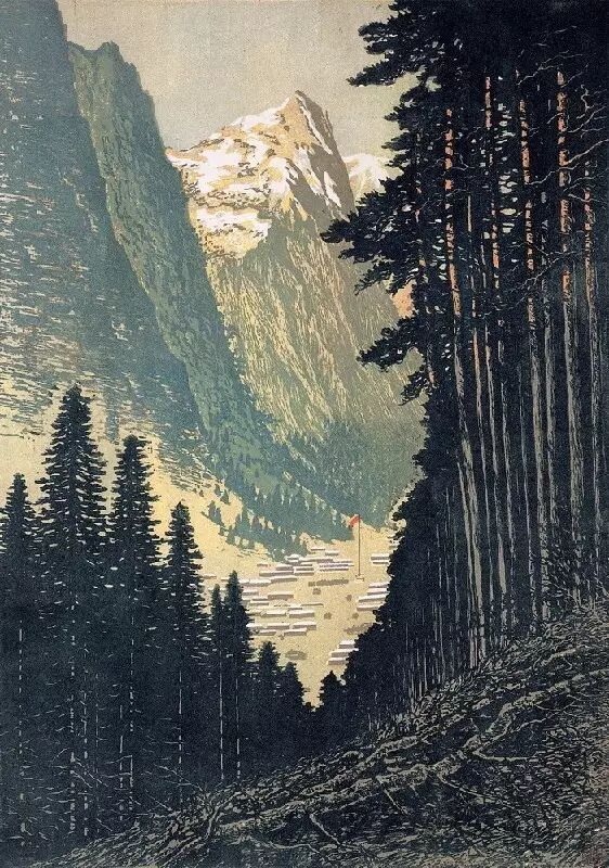长白山的早晨 65.2cm × 45.8cm 凸版 1963年