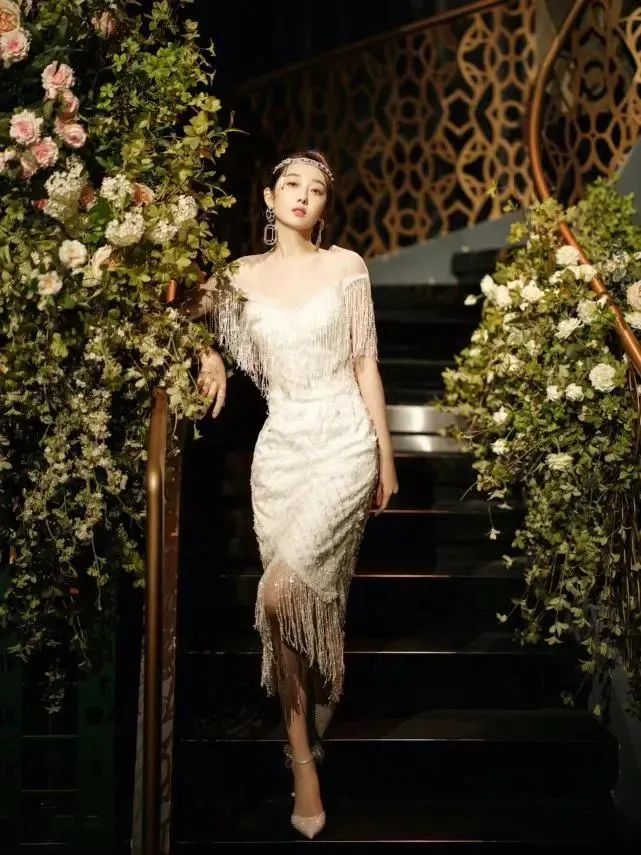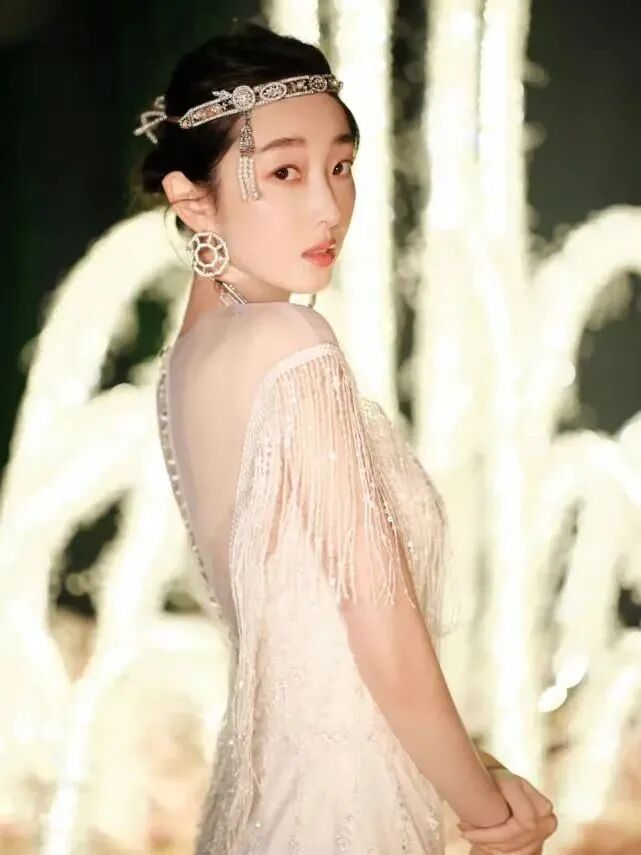 连衣裙加上流苏,加上流苏发箍,更好看,蒋梦婕所选的这一身白色连衣裙, 确实是好看,礼服的设计,可以加上白色西装,可以作为内搭,形成叠穿