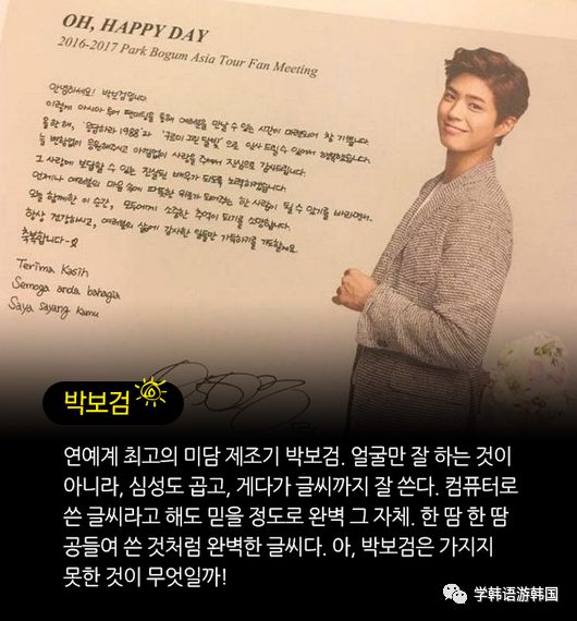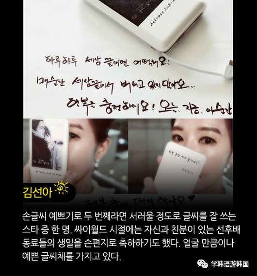 俗话说:“字如其人”,一个人的字迹表示了这个人的外在和内在,在韩国娱乐圈,仿佛也正是印证了这句古话,这些拥有完美外形的明星们,写了一手的好字,一起来看看谁的字更让你心动~