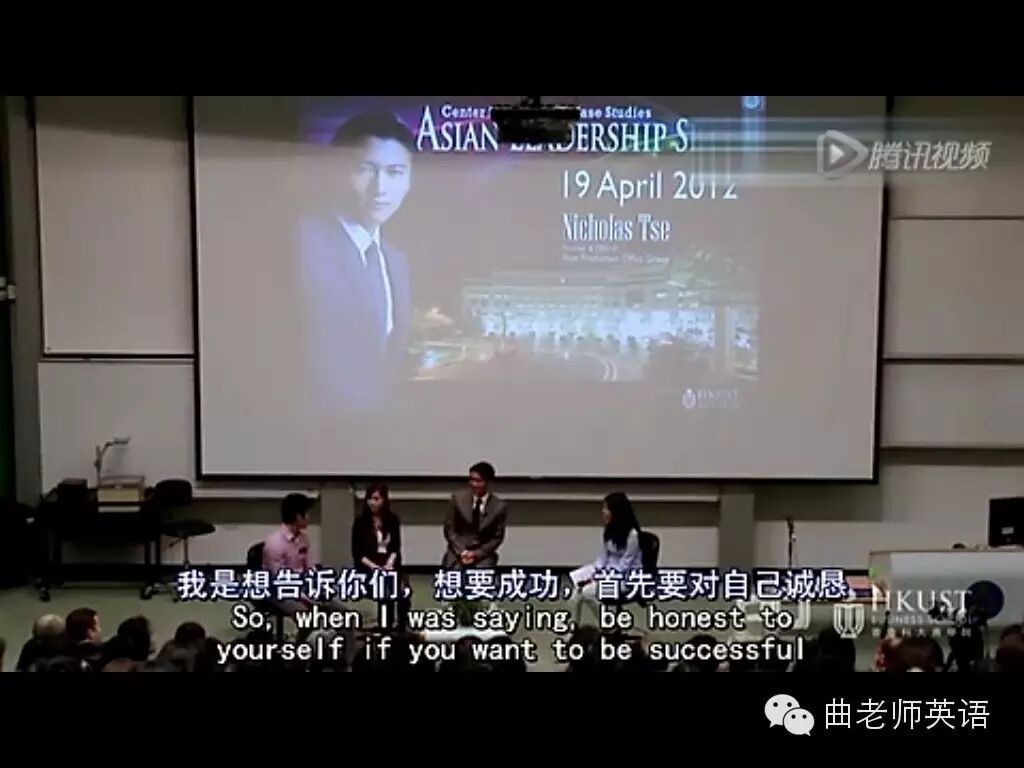 谢霆锋在出席香港科技大学举办的「亚洲领袖讲座系列」首场讲座时指出,诚实对待自己,并热爱自己所做的事是成功的关键。 谢先生与出席讲座约350名科大师生分享了其创意企业的发展历程、他的管理理念,以及他成为青年领袖的经历等。 他说:「作为领袖,必需拥有能激励和启发他人的能力,并且专注于自己的工作,以及懂得自律。要成为领袖,就要对自己诚实,了解甚么是自己最爱做的事、自己是一个怎样的人。因为只有由心底出发,做自己爱做的事,你才会完全投入,甚至拥有需要牺牲的准备。」