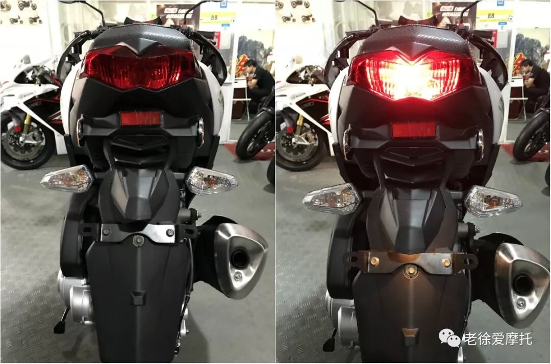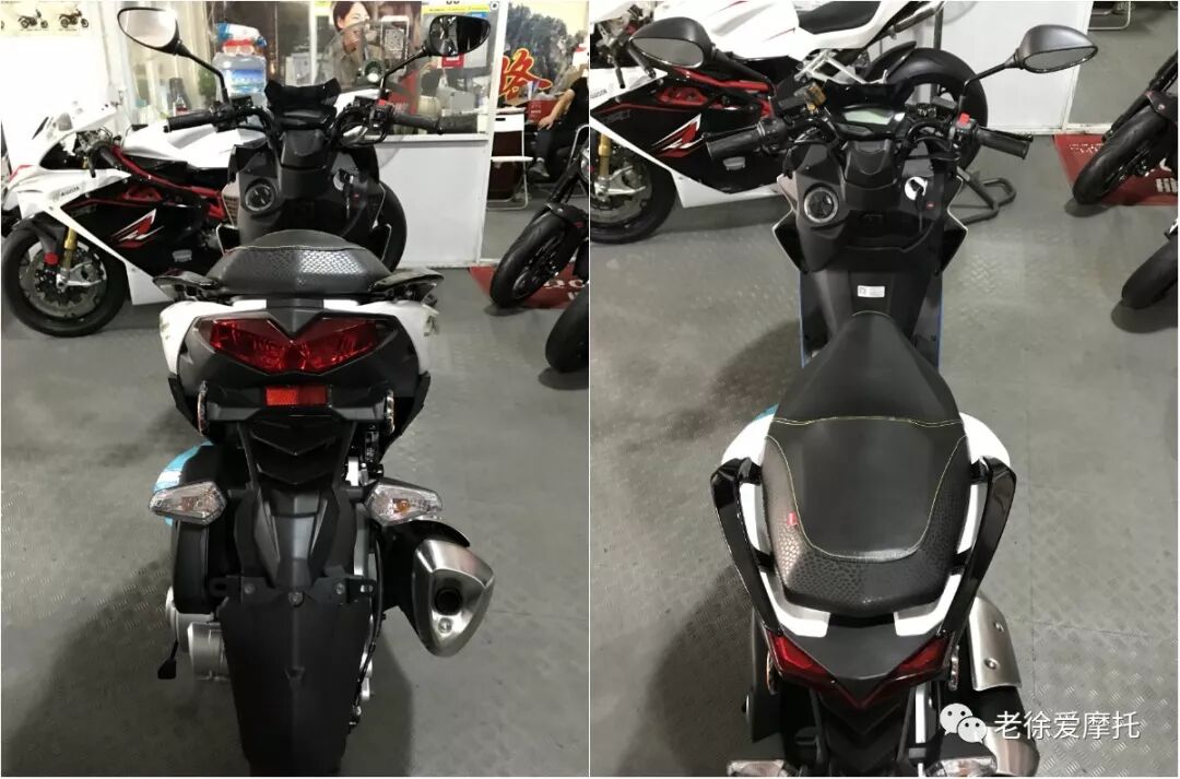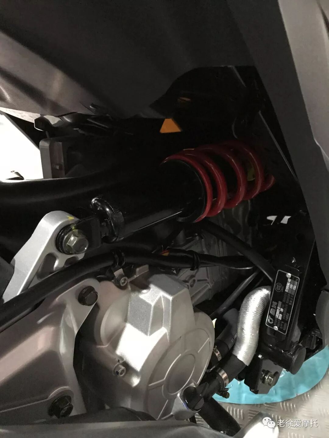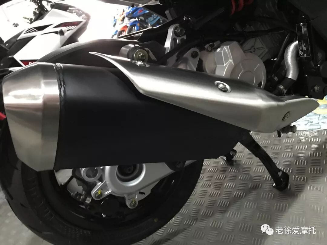 排气管外形有些像GSX250的排气,符合最新的国四排放标准。
