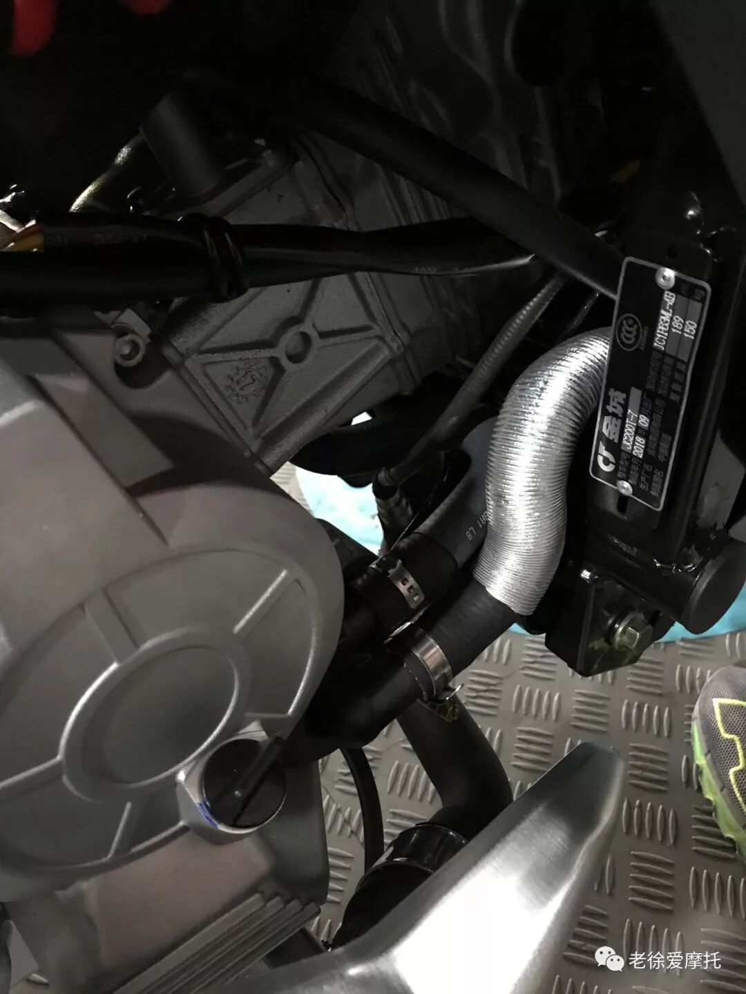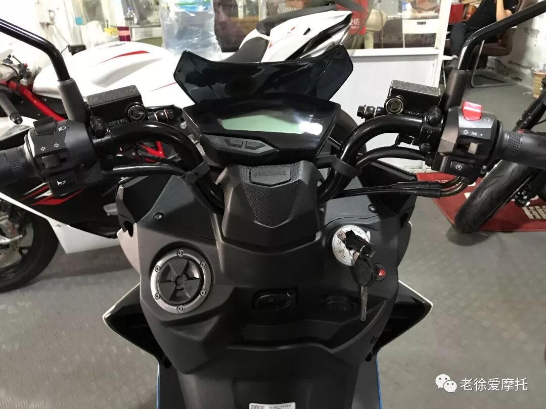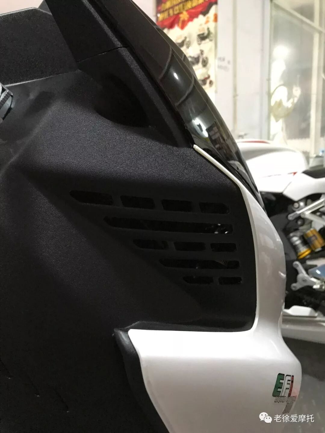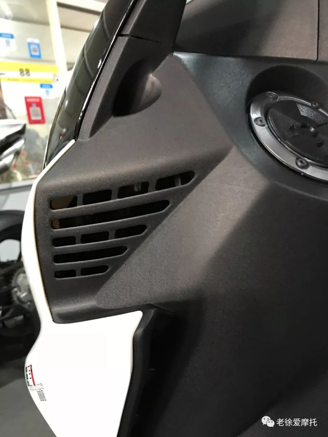 大灯上方类似于汽车的进气格栅,是为了导入更多的气流帮助水箱散热。与圣甲虫相同,水冷散热器在车头上方,这要比侧置的具备更好的散热效果。