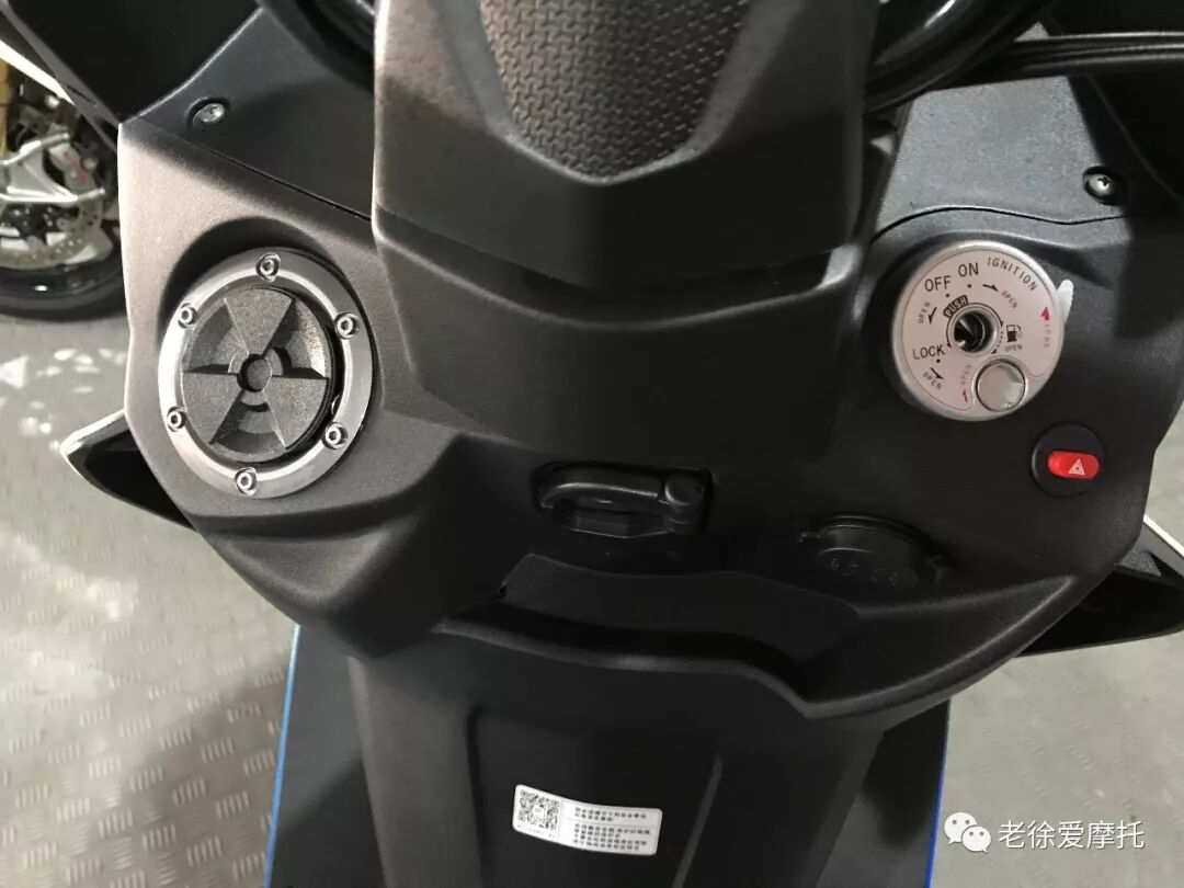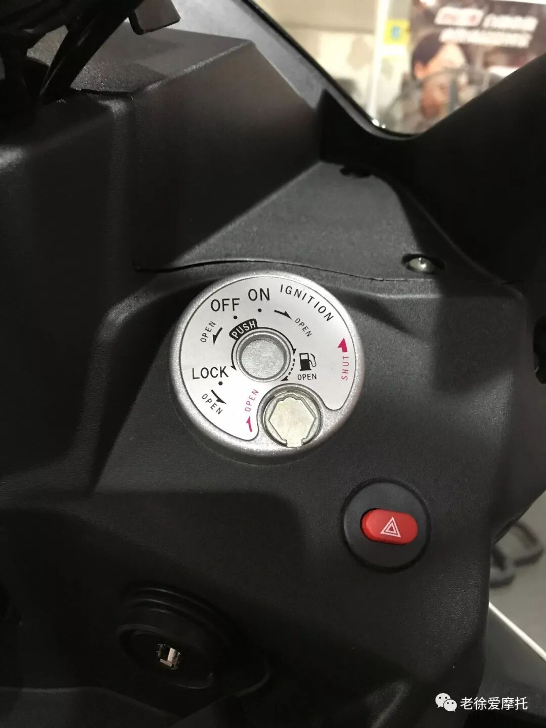 带磁石锁的防盗钥匙门,可通过它为全车通电,还可以控制油箱盖和车座的开启,旁边是一个独立的双闪开关,
