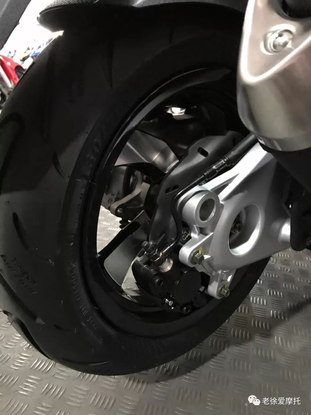 后轮胎规格130/70 R13滕森轮胎,后刹车为220mm刹车盘配单活塞卡钳。