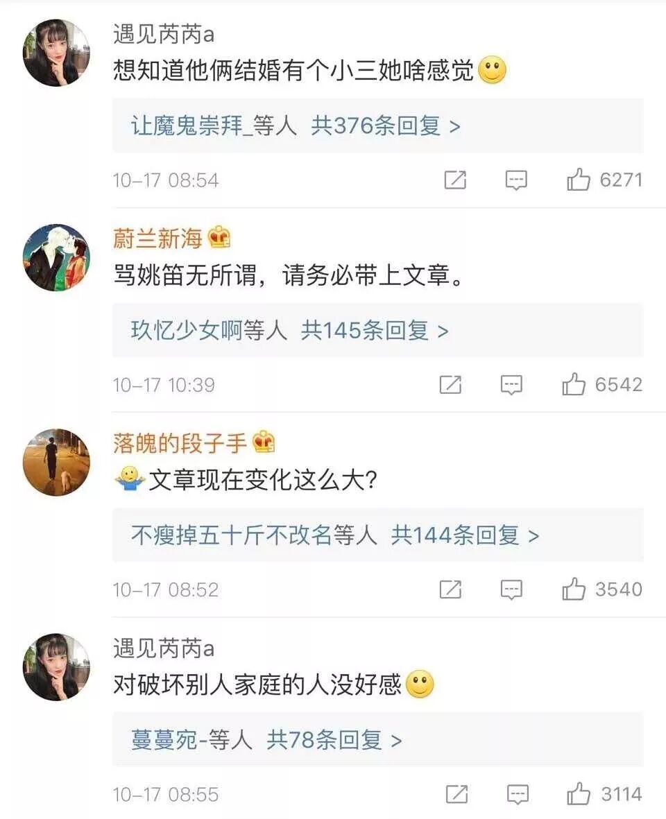 姚笛和男友的恋情曝光后很多网友表示祝福,希望姚笛也能遇到真爱开花结果,但是也有网友还是抓住当年姚笛和文章婚外情的事情不放,称“小三怎么可能被原谅”,“姚笛洗不白了”。