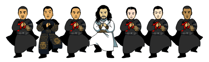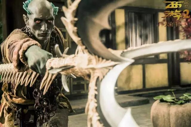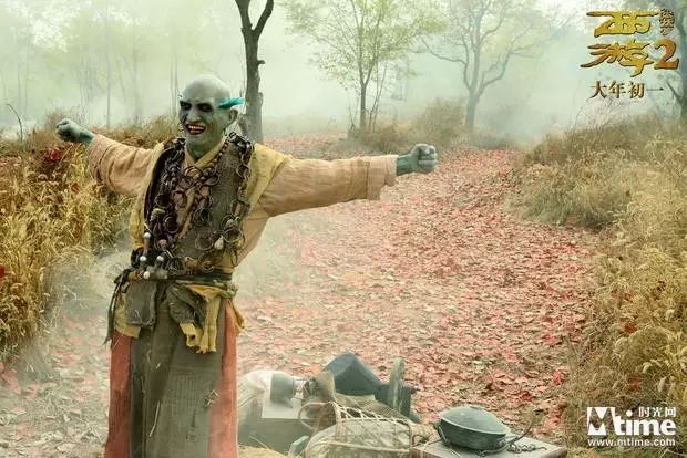 王宝强身穿黄色武僧服,戴着红色头带与猴子吊坠,用大笑、吃惊、吐舌、疑惑等各种表情演绎了一个重情义的“小人物武空”。