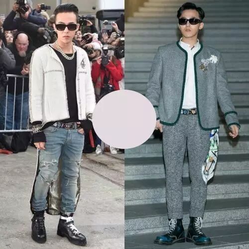 2015巴黎高定时装周&香奈儿Chanel2016早春度假系列秀龙哥黑超遮面助阵Chanel秀 ,双手插兜帅气不羁,破洞牛仔裤搭配黑色马丁靴相当帅气,不愧是时尚界的韩流idol,亮相2015巴黎高定时装周。另一套Look龙哥身穿CHANEL2015巴黎-萨尔茨堡高级手工坊系列的灰色呢套装搭配刺绣腰带,外加印花丝巾和马丁靴,亮相品牌2016早春度假大秀,潮范儿十足。