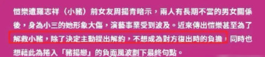 ●简恺乐称,事发后,罗志祥就火速切割、向恺乐要求解约,令她深受打击。