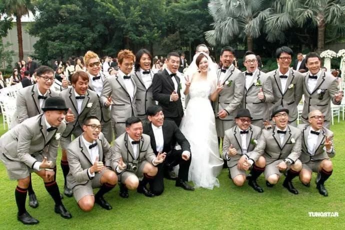 后来他们在迪士尼举行了一场草坪西式婚礼,古惑仔们都是伴郎。
