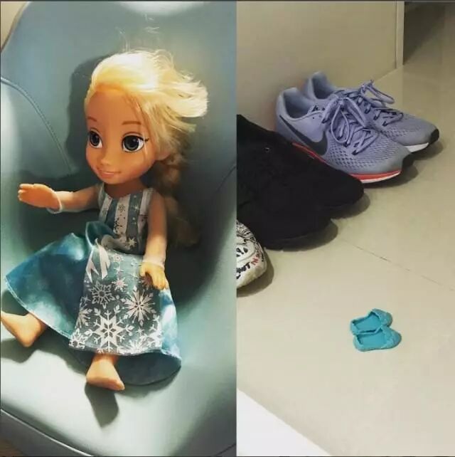 日前,池晟上载新照片,是动画片《冰雪奇缘》女主角Elsa,并留言指女儿智柔贴心地帮Elsa拖鞋,将鞋放在家中玄关,与爸爸妈妈的鞋子整齐地摆到一起,而Elsa就坐在沙发上,这一幕令池晟哭笑不得。