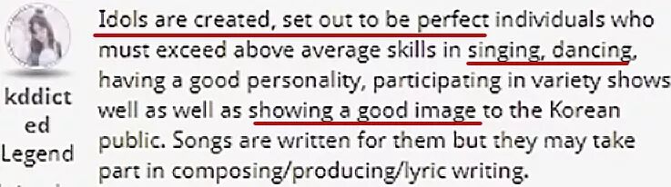 这是一个国际娱乐社区论坛关于偶像的讨论帖子,这位来自亚洲的楼主明确的给出了偶像的定义:偶像是创造出来的,能唱、能跳、能参加综艺、对外的公众形象要好。其实这中标准几乎能概括所有中国观众甚至是整个亚洲对偶像的定义和理解。