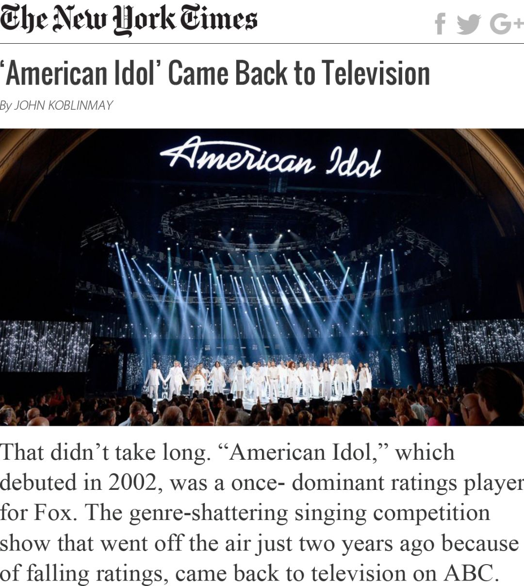 几乎在同一时间,大洋彼岸的美利坚,在3月份重新推出了曾经的选秀节目鼻祖、收视之王---《美国偶像》。这档综艺选秀节目源自于英国的《Pop Idol》,在2002年开始播出,曾经一共走过了15个年头,培养出很多如Kelly Clarkson, Jennifer Hudson这样的世界级歌手,在2016年因为收视下降,被迫收官。但在2018年,这档曾经的霸主节目又重新回到了ABC。