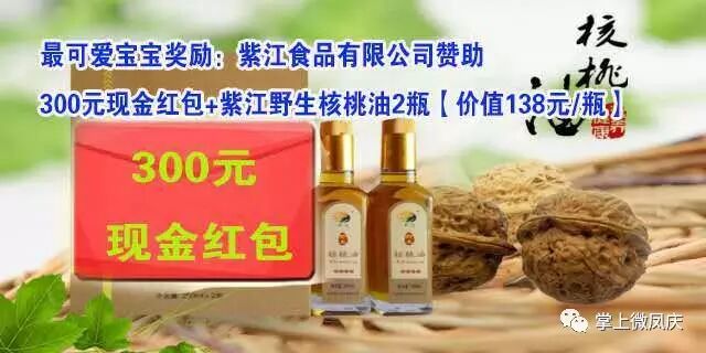 截止2017年10月31日23点59分,凤庆同城第二届“紫江杯”萌宝大赛投票结束了,本次大赛共有160名宝宝参与报名,宝宝们在本次比赛中,展现了自己,阳光、健康、活泼的一面,今天小编将公布获奖情况,参与了的朋友赶快看看你家宝宝排第几名吧!