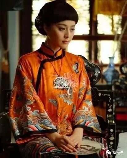 其实范冰冰最美的还是在《王朝的女人》中的橙色寝衣造型,翩翩起舞的范冰冰看上十分迷人,这样的美人才更符合历史上所形容的杨贵妃。