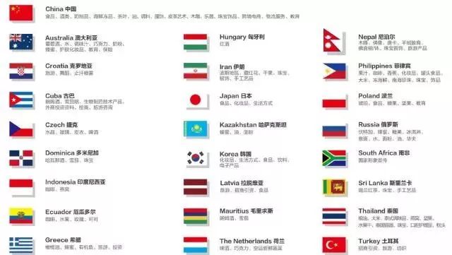 来自澳大利亚、克罗地亚、古巴、捷克、多米尼加、厄瓜多尔等26个国家160多家企业将集中展示食品饮料、护肤美妆、手工艺品、家居装饰、珠宝玉石、服饰饰品、生活方式、旅游文化等内容。