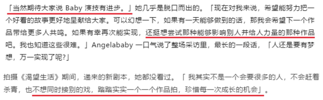 谈到表演时,她的表达欲和决心都很强,不知道她实力的人,可能会误以为她是个演技派。