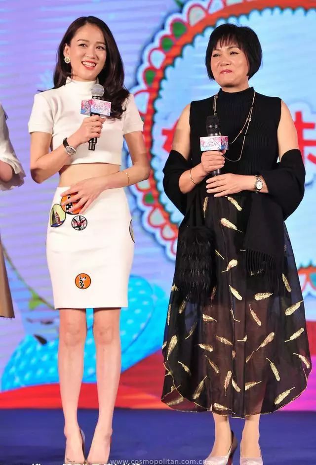 30多岁的陈乔恩穿起白色分体裙,包臀的设计很性感,卡通的印花图案又显俏皮。