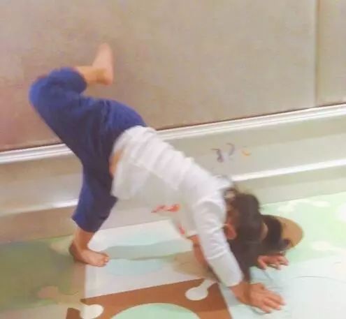 从妈妈那继承瑜伽,从老爸这就继承了活泼好动。可见小花妹妹饭量大不是没有原因的啊!不吃饱哪有力气运动?