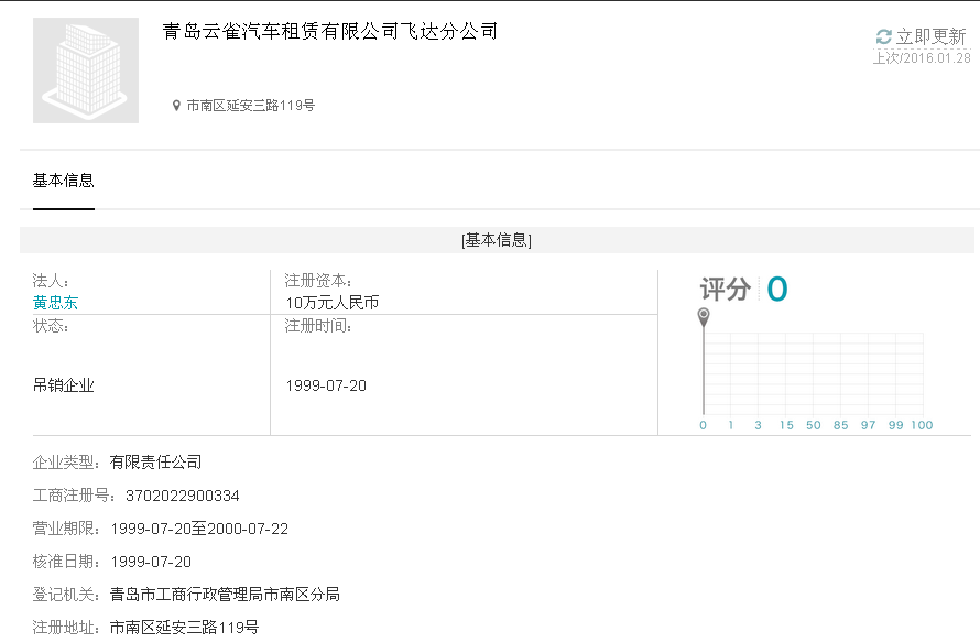 其中,青岛云雀汽车租赁有限公司飞达分公司与访谈中的“汽车租赁公司”十分吻合,注册资金在10万元,2000年就吊销了。