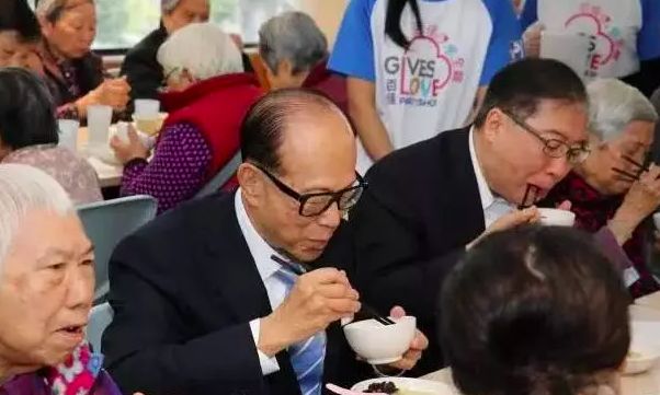李嘉诚当时还笑称自己是90后,并且说有这样的饭菜吃已经不错了,自己年轻的时候常常连饭都没得吃。他还给许多老人家带去了新年礼物。吃完饭之后,李嘉诚临走之前给惜食堂捐了1000万元。