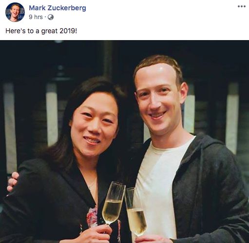 扎克伯格也在个人Facebook的页面发布了和妻子的新年合照和新年祝福。