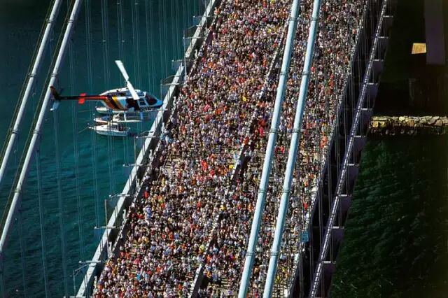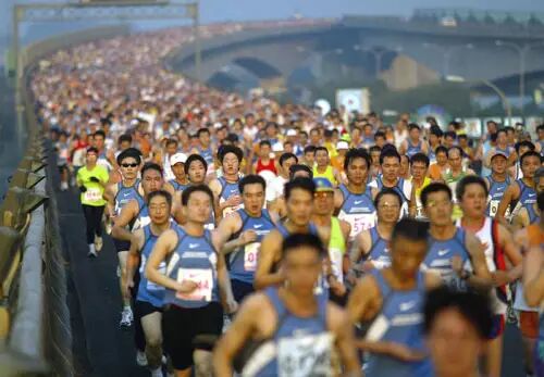 这么多人同时跑会不会把桥压垮啊?好担心。