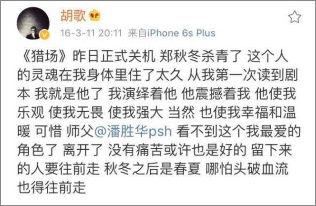 如今却去主动争取角色,由此可见,《猎场》之于胡歌的重要和喜爱。