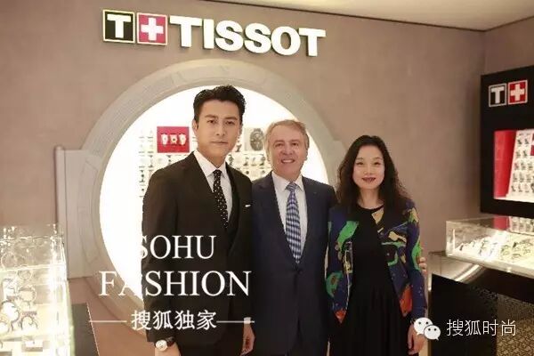 靳东与天梭表全球总裁弗朗索瓦·添宝(François Thiébaud)先生、天梭表中国区副总裁王颖女士合影