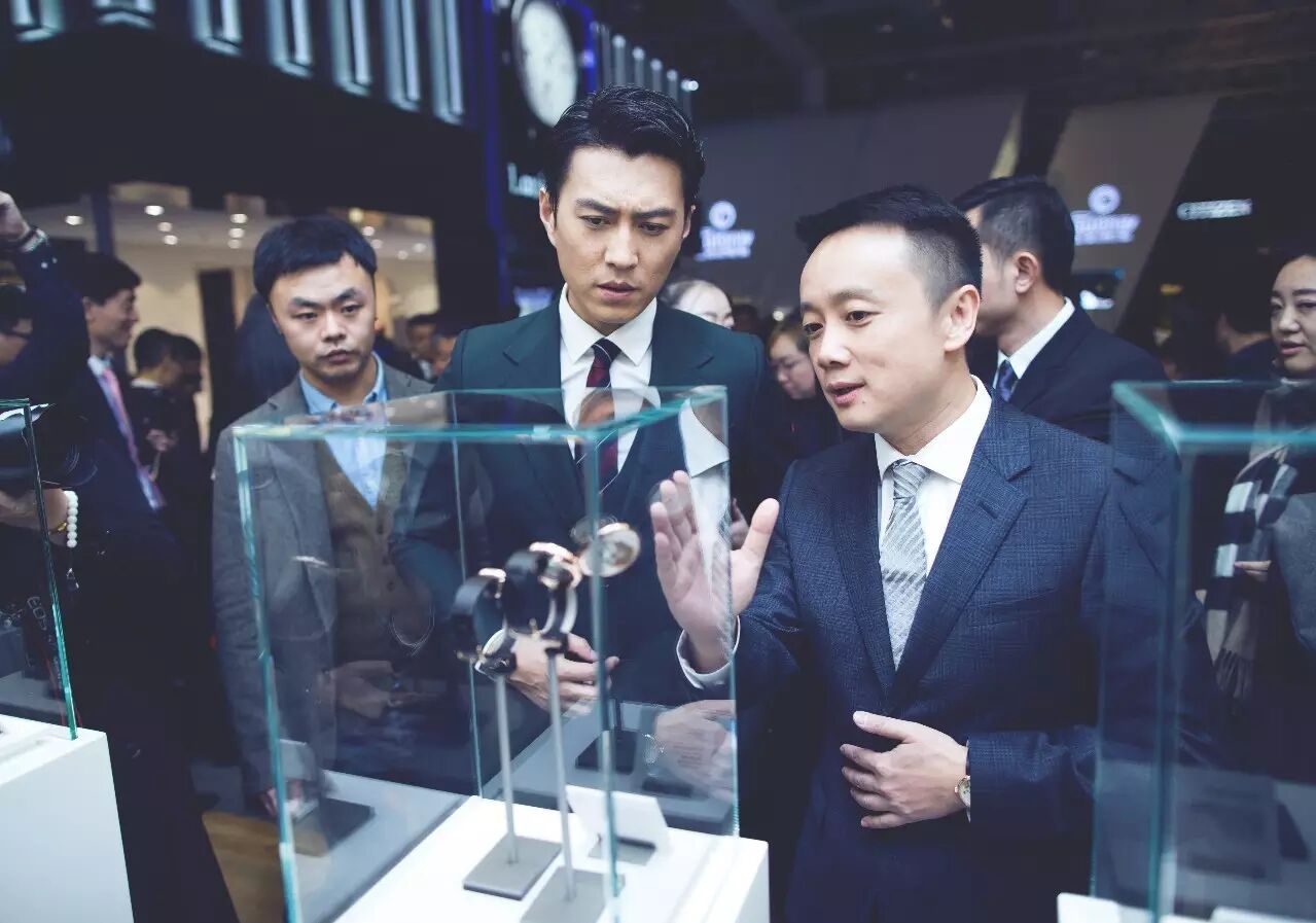 咦?江疏影和东哥认真研究的好像是同一块表,因为在旁边讲解的是同一位西装男士。这位正是飞亚达高层杜熙先生。原来女神和男神的真爱是飞亚达!