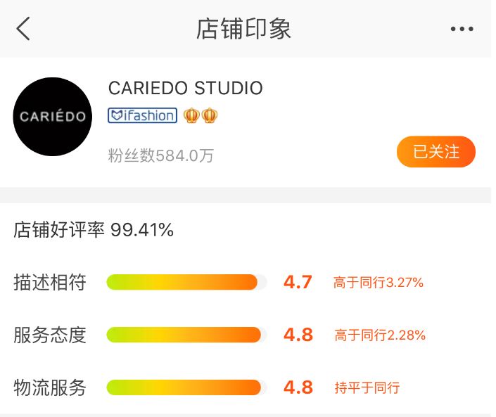 再看了下她家的评分,整体还是蛮高的,就是“描述相符”这块评分低了很多,嫂子好像隐隐约约知道了些什么。。。