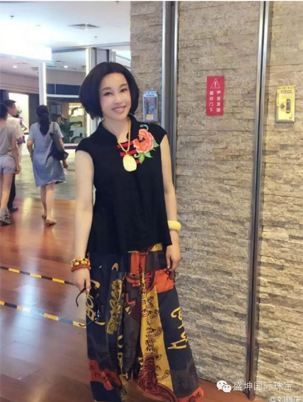 莫要怪,刘晓庆胸口上这么大一块琥珀、玉石和翡翠的,是个人都会注意到的,都要多看几眼。