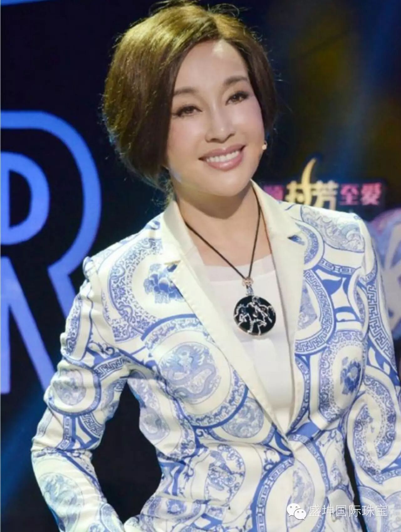 一般人吊坠就一个,刘晓庆直接就两个坠子一起挂在脖子上。