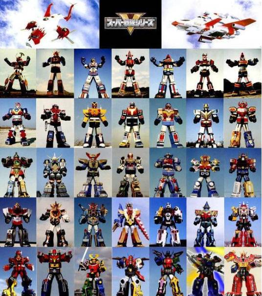 从第三部战队《战斗狂热J》开始,每部超级战队系列,都有巨大机器人的出现。从开始的一个机器人,到诞生第二个机器人,到合体,到追加武装等等。