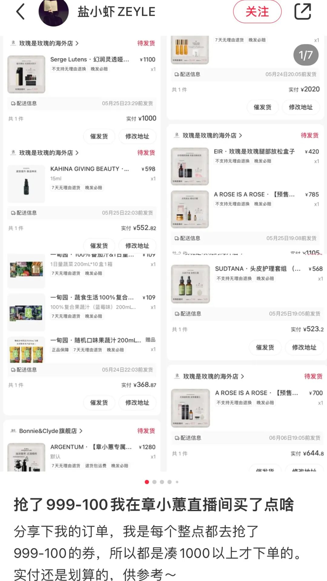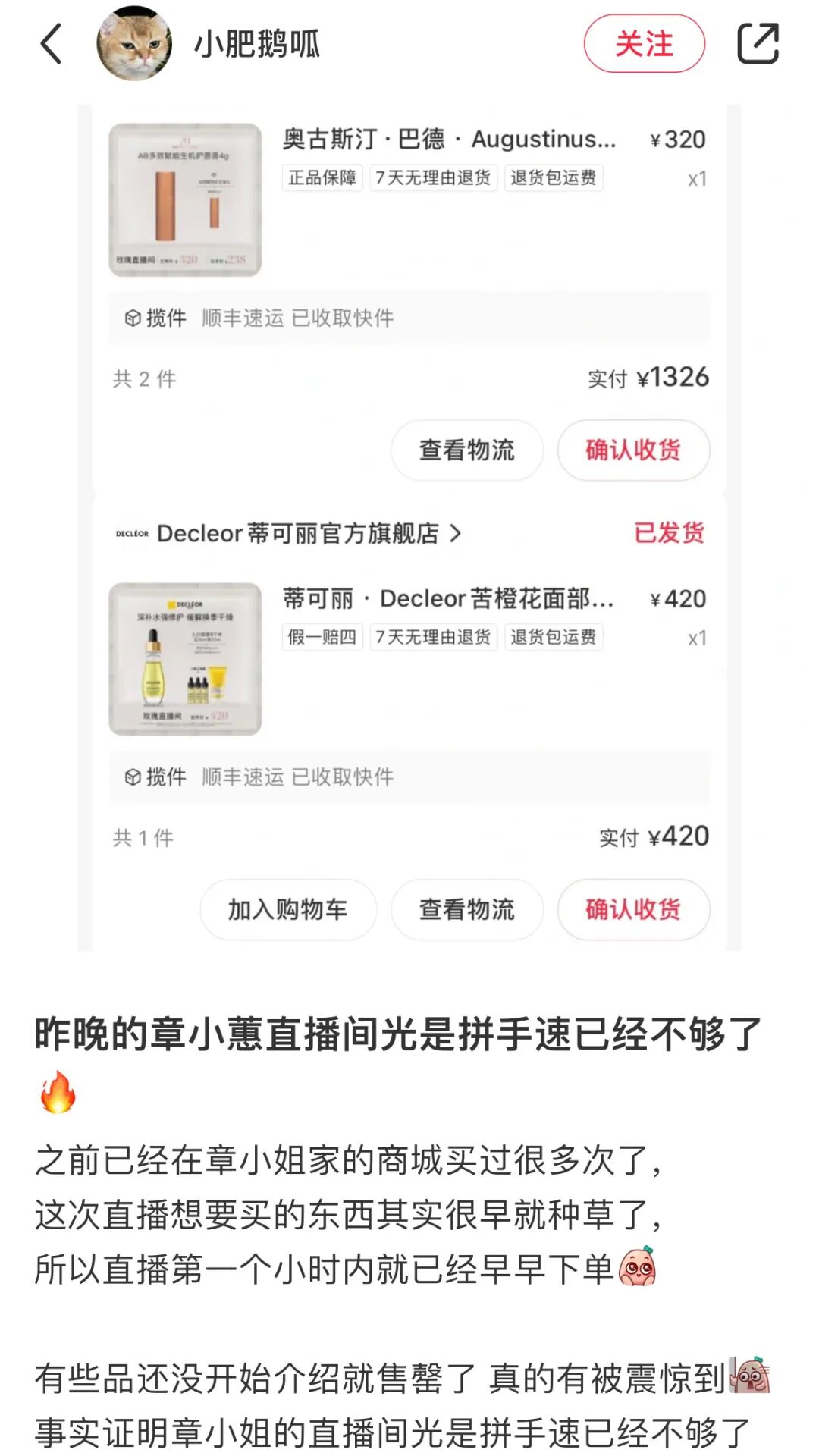 章小蕙直播之后,许多下单的用户也纷纷晒出好评。