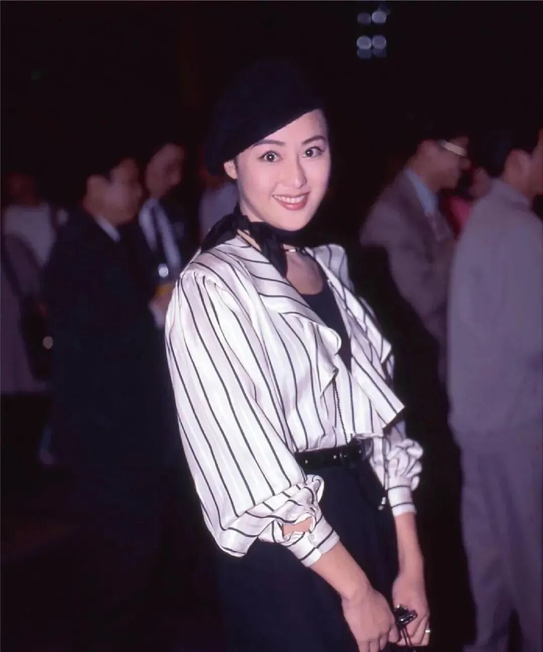 报刊封面的章小蕙一身白色条纹衬衫搭配黑色半身裙,面料质感高级,黑白搭配经典耐看,搭配起黑色贝雷帽精致而可爱,港风味道浓郁。