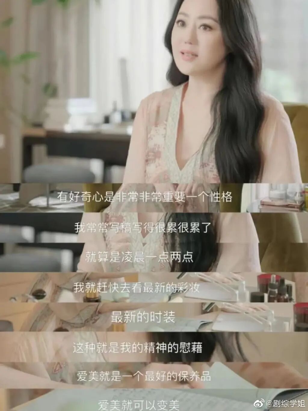 她的直播间里没有洗脑的旋律,上链接时的快节奏,介绍产品的各种喊话,只是坐着一位散发着真正名媛气质的优雅女性,用诗意的话语,徐徐的语调,向大家娓娓道来她几十年来的爱用好物,充满纯粹的分享欲和诚挚的真心。