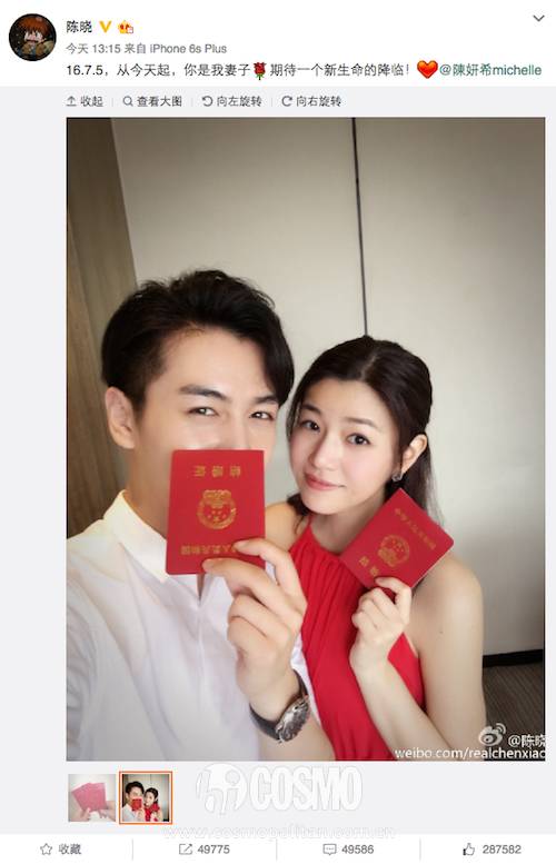 看到陈晓陈妍希领证的消息COCO觉得好开心啊,因为就和我们普通老百姓一样自然,后来陈晓在微博上宣布陈妍希怀孕,真的是喜事一波接一波,好想看到这对高颜值组合生下来的小孩有多可爱!