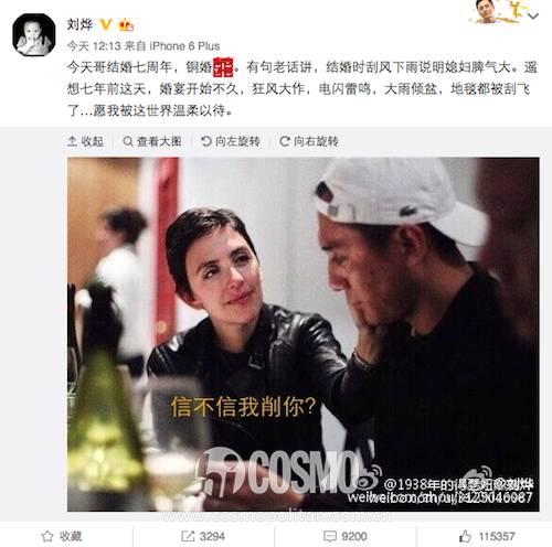我们火华社社长刘烨先生今天也弱弱地发了一条微博庆祝和老婆结婚7周年的日子。看到诺一和霓娜这么大了想着自己应该是没有机会了。看到这图莫名心疼安娜,你可是要照顾三个孩子啊,社长对你老婆好点哦。