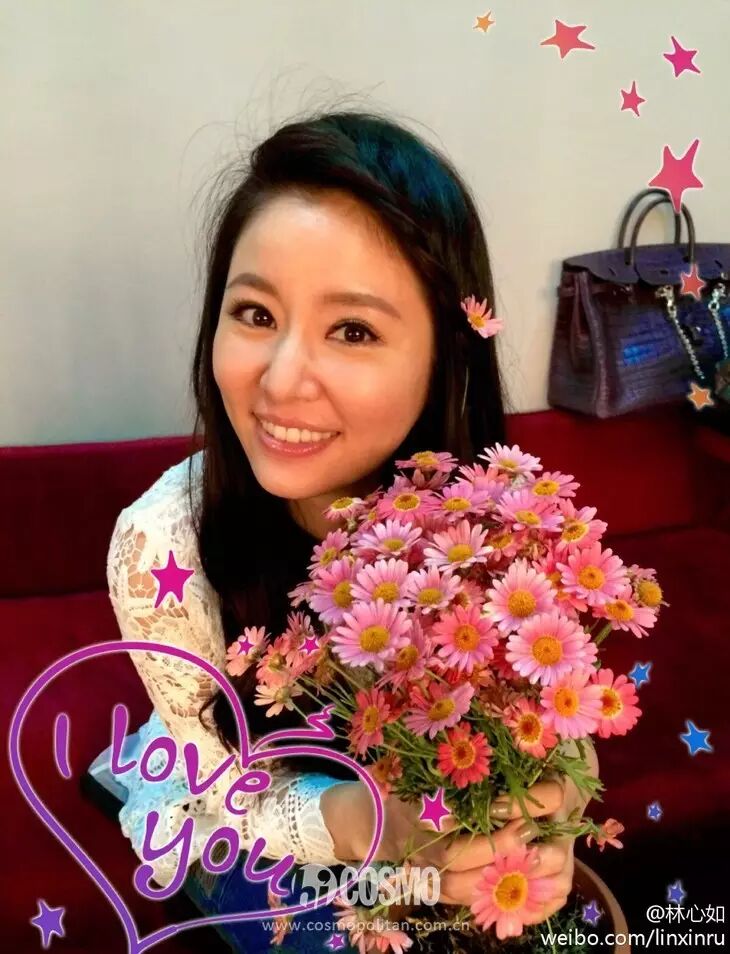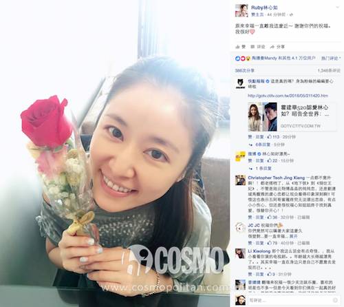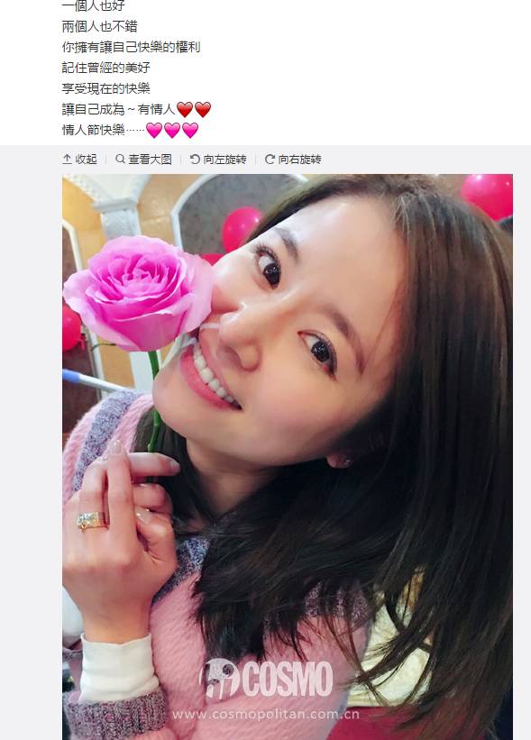 心如也是在脸书上晒出自己手捧玫瑰的照片,看上去心情很好,不知道这是不是老霍送的呢?