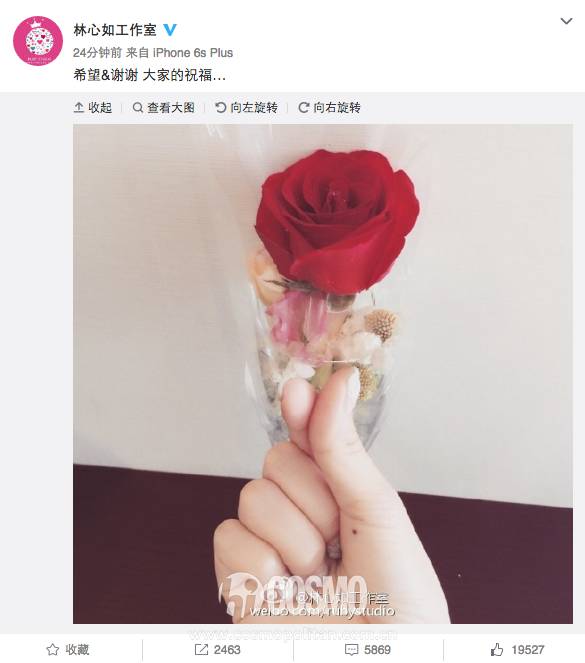 现在回看真的是觉得好美好,言简意赅但是爱意满满,心如就发了一个表情和玫瑰花。可以,这很林心如,因为她就是一个很浪漫的人。