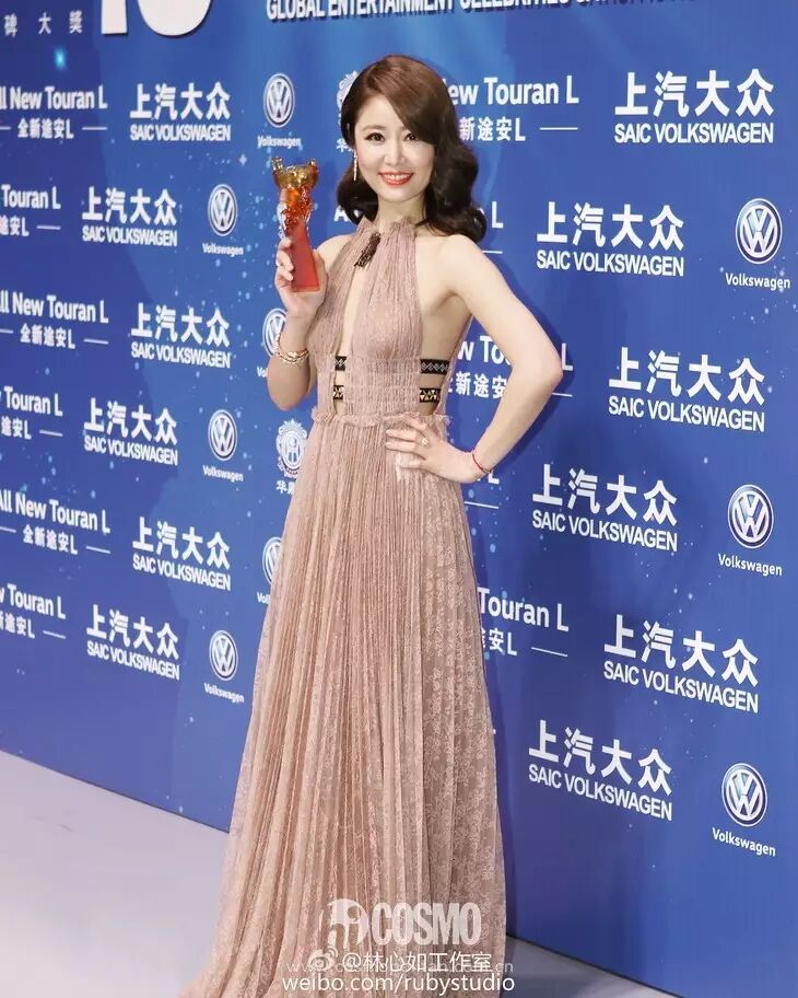 第18届华鼎奖盛典红毯 林心如Valentino真空露背礼服,裸色和蕾丝的搭配让整体风格优雅大气。