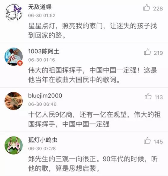 一些网友为郑智化点赞,说他三观一直很正,早年的歌曲如《大国民》等也影响了自己: