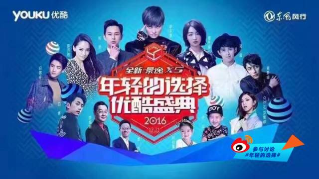 12月21日全新景逸X5 独家冠名的优酷十年盛典“年轻的选择”在北京隆重举行!盛典现场全面盘点2016年最炙手可热的明星名人和优质内容,并颁发年度最强奖项和优酷十年重量级大奖。若论现场的嘉宾阵容多强大,看梁朝伟、王家卫、葛优、何炅、范冰冰、李宇春、郭德纲、杨洋、唐嫣、周冬雨、张天爱、AKB48、华晨宇等等明星就可见一斑了,无一不是受年轻人热捧的大咖。年轻的选择,我们的选择,全新景逸X5。